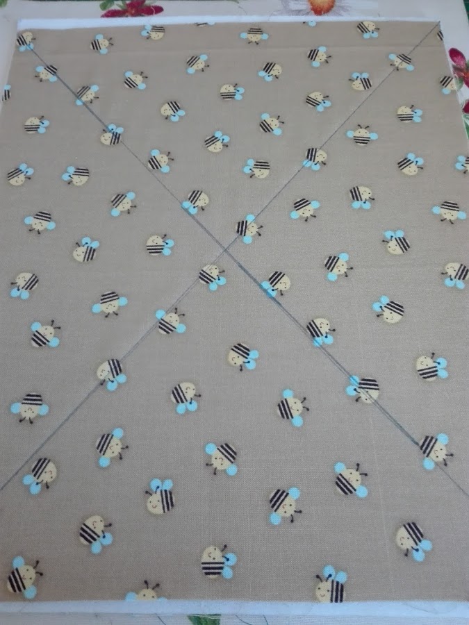 En primer lugar comenzaremos marcando el centro, hacemos dos líneas de esquina a esquina de la tela y a partir de estas dos líneas vamos dibujando paralelas del ancho que queramos. Cuanto más pegadas, más bonito será el resultado.