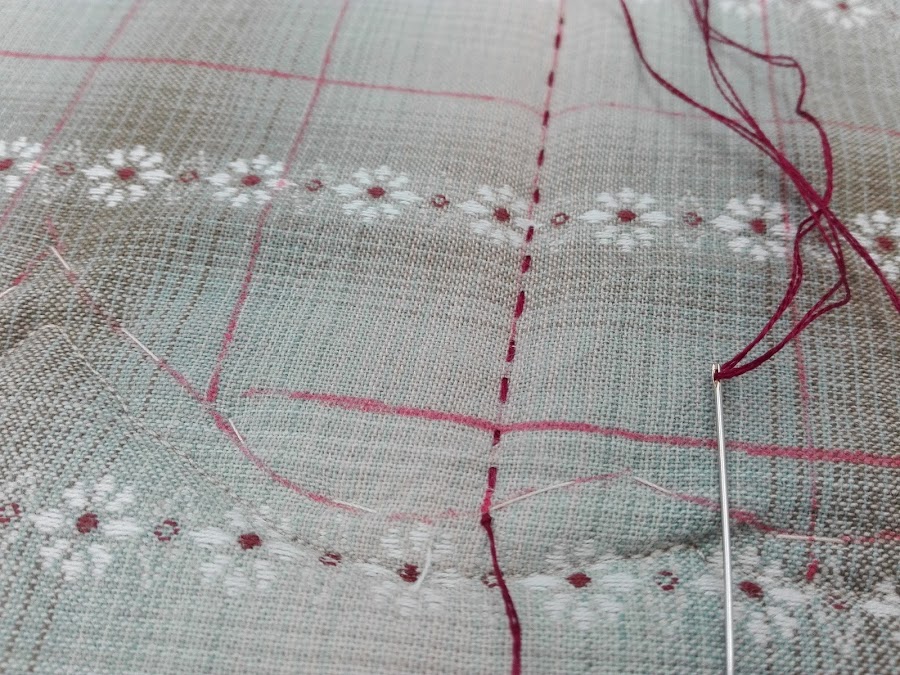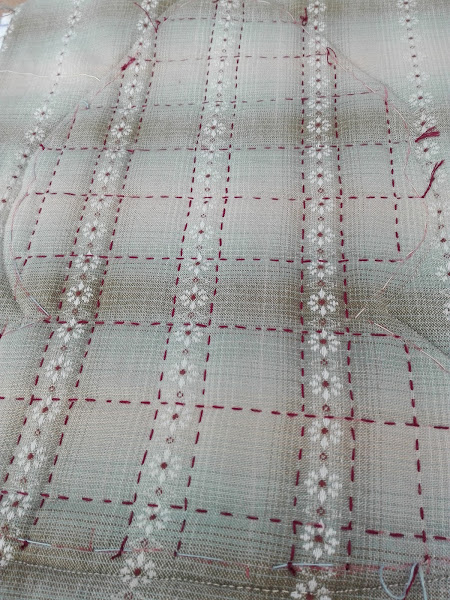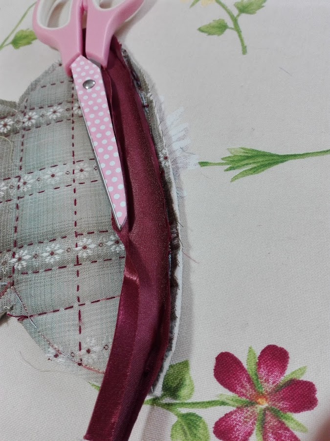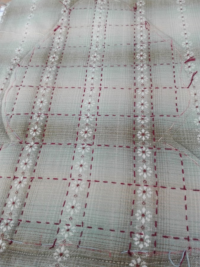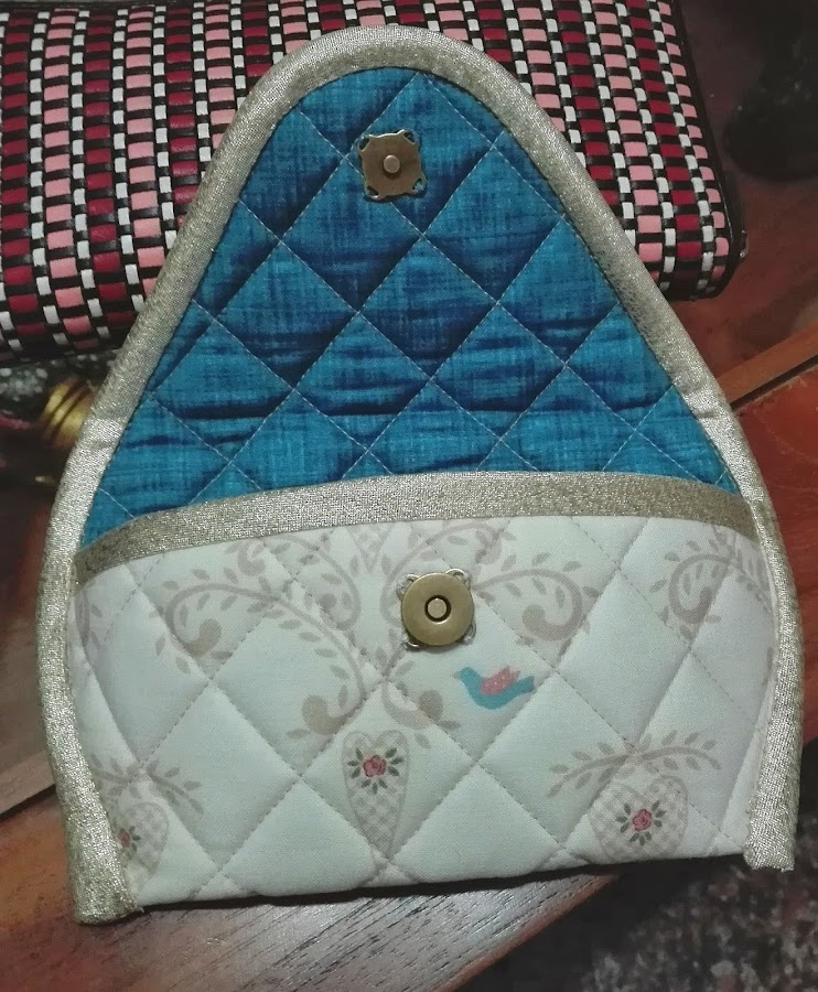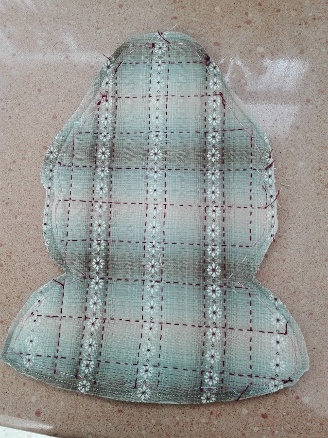 Este modelo está acolchado a máquina y decidí acolchar por dentro y por fuera, me parecía algo Rococó tanto por el acolchado como por los colores.