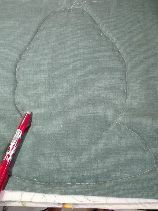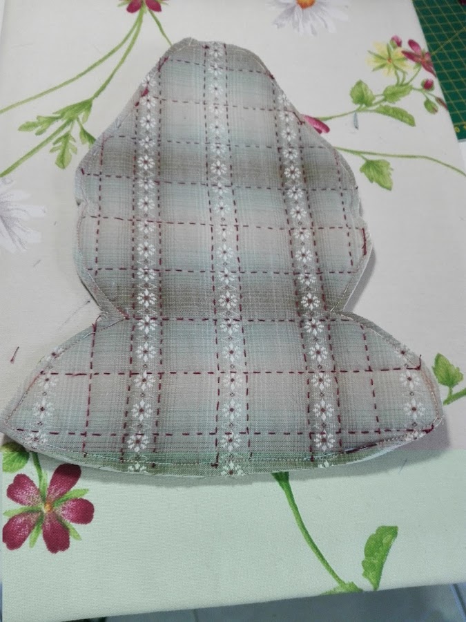 En este modelo que les presento el acolchado lo he realizado a mano llevándome por el dibujo de la tela, resaltando las flores.