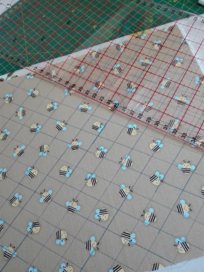 Vamos a cortar nuestra tela. Las medidas de las capas son de 30 cm por 25 cm. Cortamos las dos telas y las planchamos sobre el estabilizador para que se peguen.