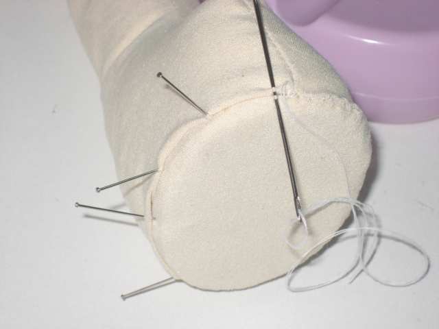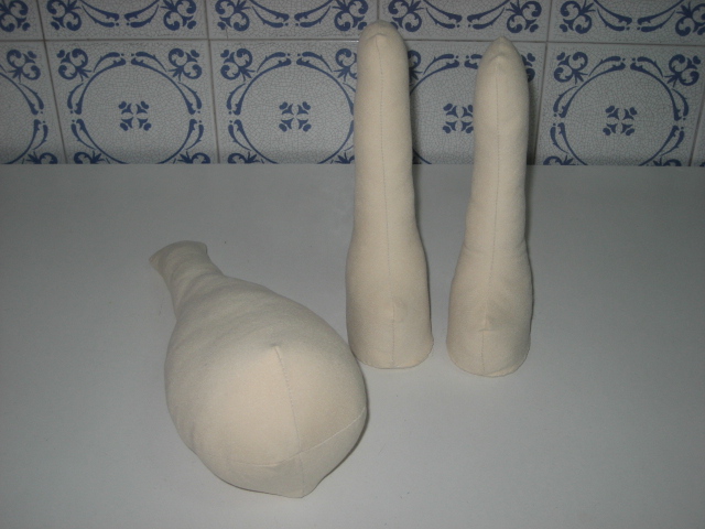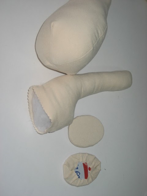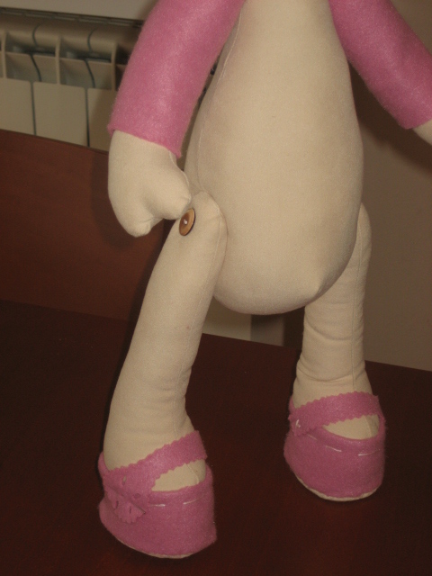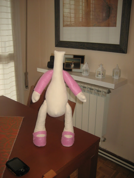 LAS PIERNAS SE UNEN AL CUERPO ATRAVESÁNDOLO DE UN LADO AL OTRO, Y SE PONEN BOTONES PARA DARLE MOVILIDAD.