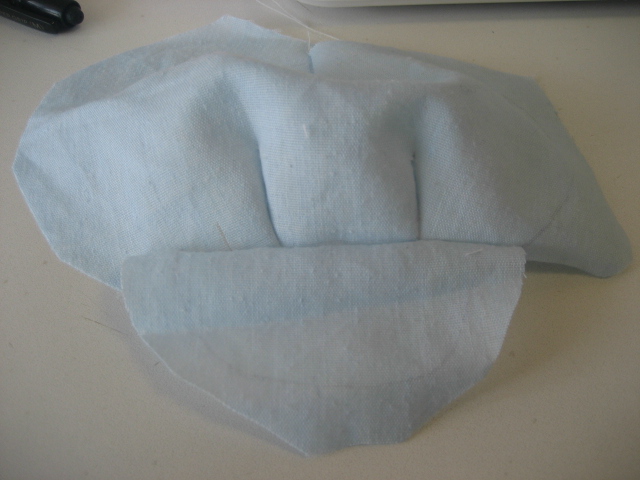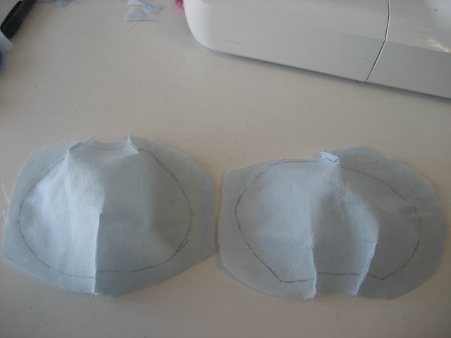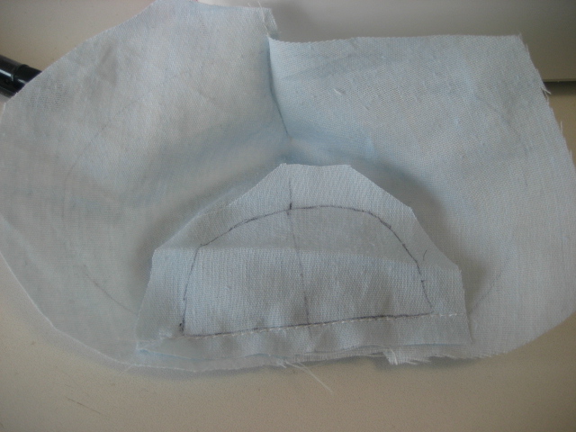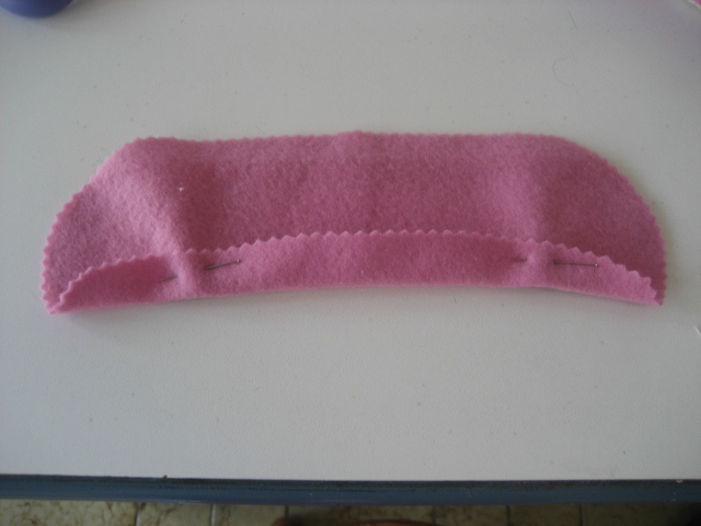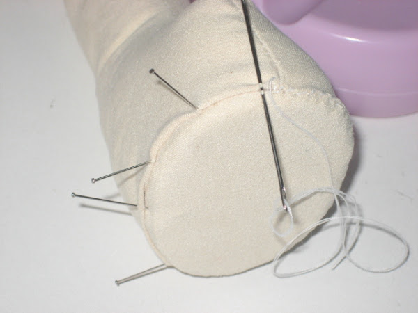 AQUÍ LOS BRAZOS ESTÁN COGIDOS CON ALFILERES. NO SE MONTAN HASTA CUANDO SE HAYA PUESTO LA CHAQUETILLA, MAS ADELANTE.