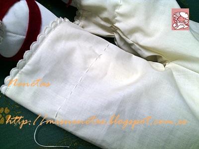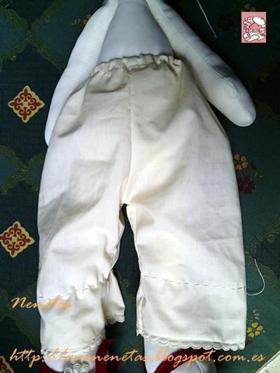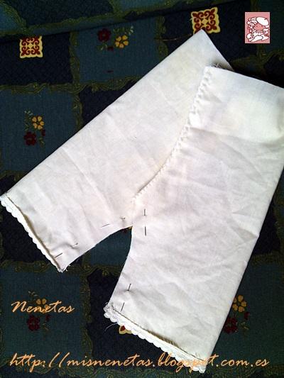Rematados los bordes inferiores, colocaremos las costuras de las piernas para coserlas las dos a la vez.