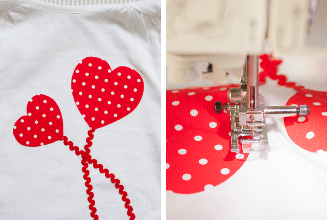 Haz primero el montaje sobre la camiseta, para escoger bien el tamaño del dibujo que quieras poner (en este caso los corazones).