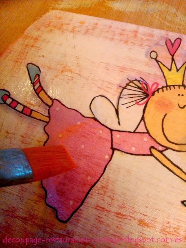 alisamos con el pincel con medium de decoupage