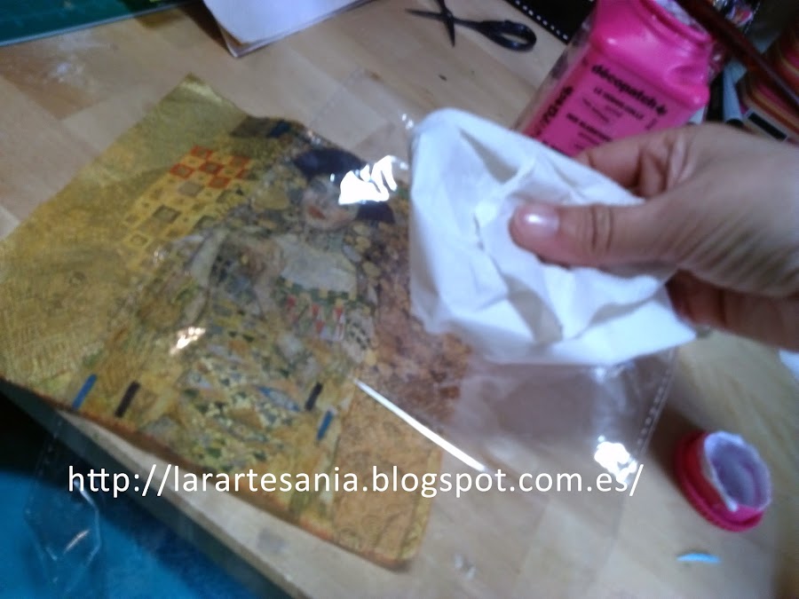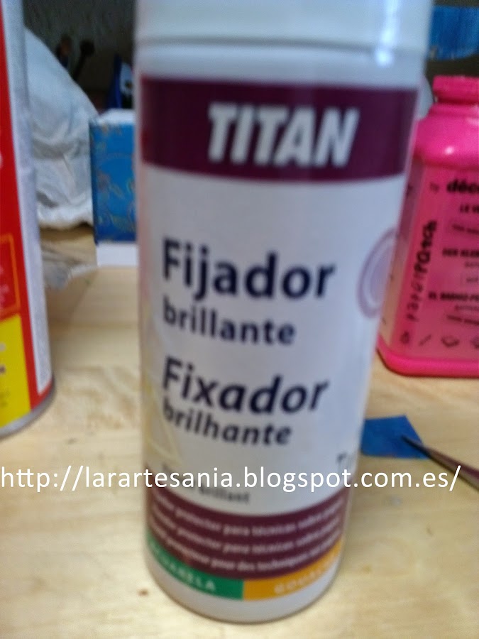 Este producto si lo podéis encontrar es una maravilla, protege la servilleta, lo uso sobre todo cuando imprimo las imágenes lo que hace es fijar la tinta y en este caso nos crea una capa fina que reforzara nuestra servilleta, he visto que hay quien utiliza laca o barniz en spray
