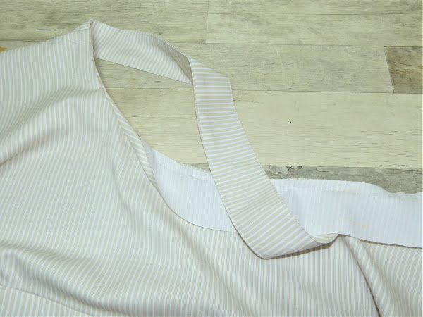 Solo nos queda confeccionar la martingala, esa pequeña pieza que se cose entre los tirantes en la espalda.