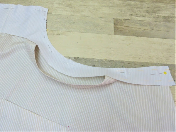 Posicionamos los tirantes y los fijamos con alfileres con cuidado de no retorcerlos, a continuación los fijamos con un pespunte o un hilván.