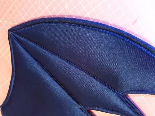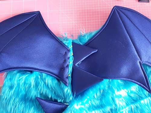 Es hora de colocar las alas en la espalda muy cerca de la cresta y les hacemos un pequeño dobladillo hacia adentro.