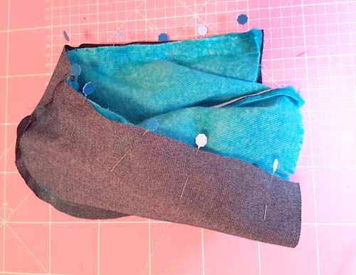 POr otro lado la capucha la vamos a forrar por lo que cosemos las dos piezas de forro jersey derecho contra derecho por toda la zona curva.