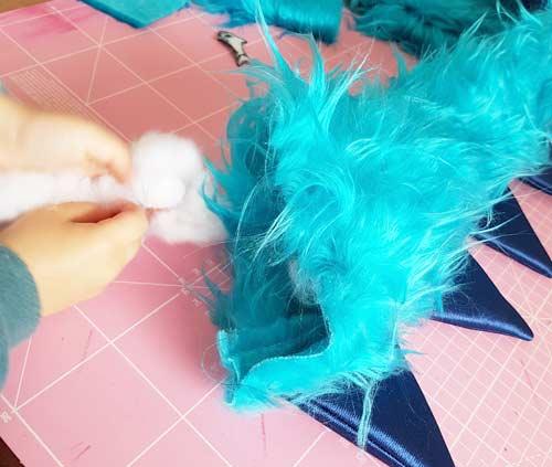 Rellenamos un poco con floca para que quede más realista y chulo!!! Y cerramos con una costura la cola para poder aplicarla mejor al cuerpo.