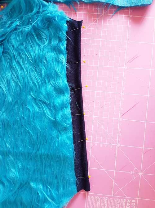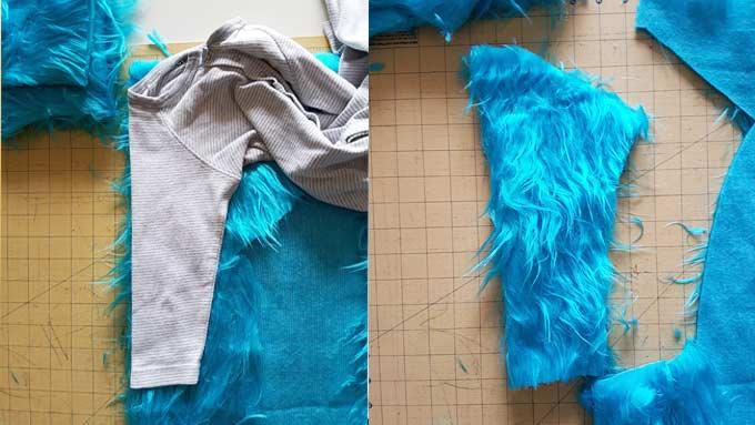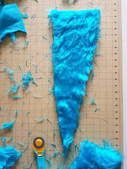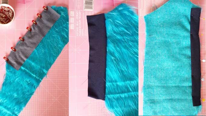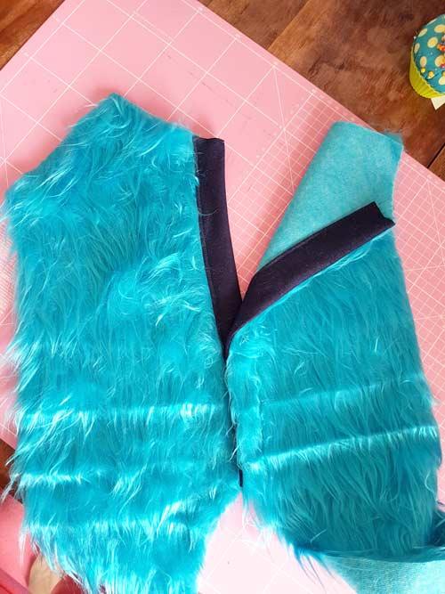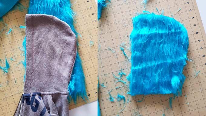 Para sacar todas las piezas dobles del tirón he doblado la tela de pelo sobre ella misma. Tener cuidado de poner siempre las piezas con el pelo en posición correcta, que peine hacia abajo.