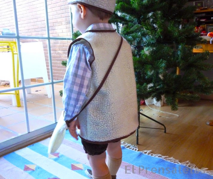 Hola, ya está terminado el disfraz de pastorcillo, después del chaleco y los pantalones, le ha tocado el turno al gorro y a la bandolera. Hay que decir que al pajarillo no le emociona demasiado, seguro que si le coloco una espada colaría mejor pero bueno se ha dejado hacer las fotos, que eso si le encanta al presumido: