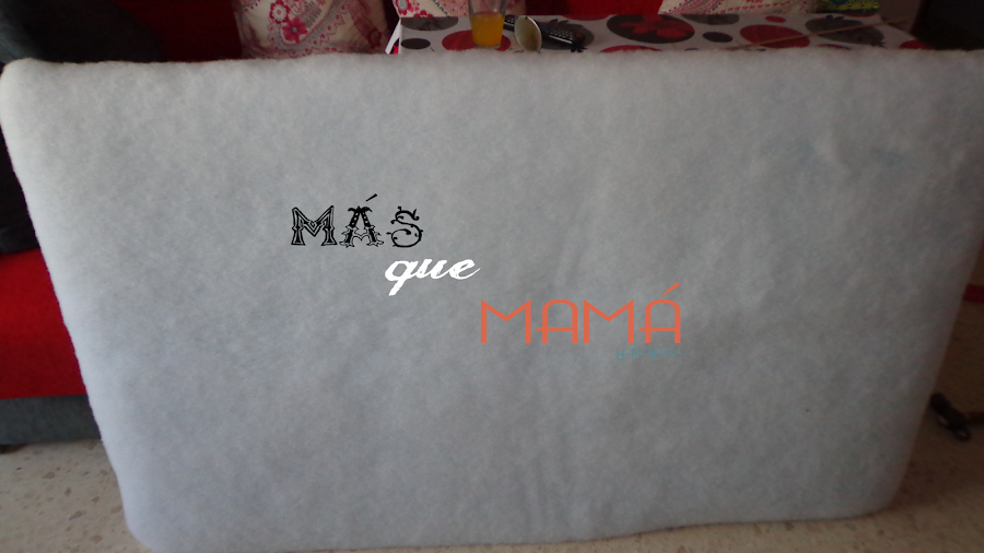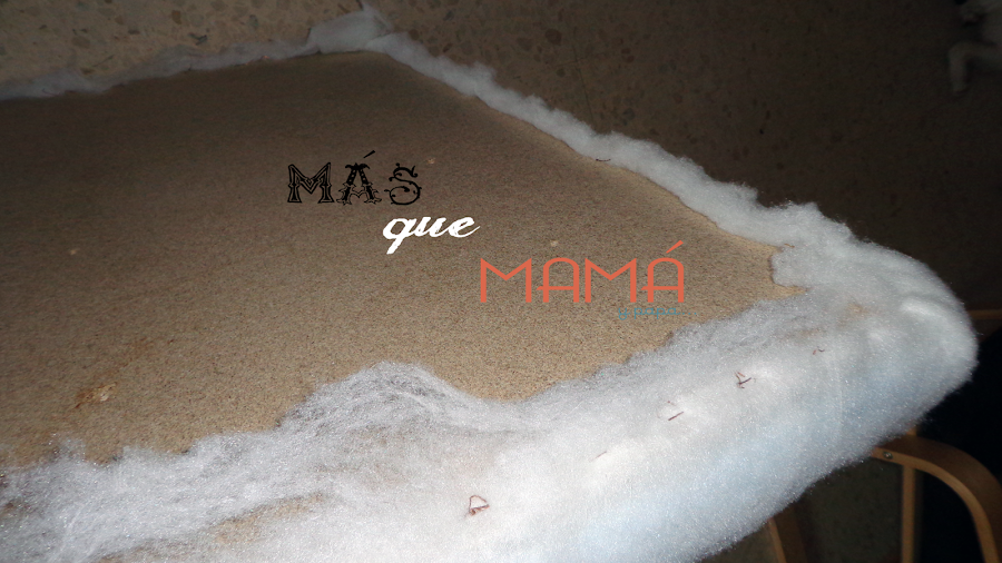 Cabecero con guata Tapizado por detrásHay que tener cuidado con no tirar mucho de la guata para que no se parta. Como podéis ver no todas las grapas quedaban perfectas, la grapadora era normalita, así que el martillo ayuda.