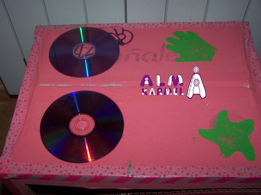 Después vienen algunos detalles, como poner en la parte superior lo que serán los "fuegos". Nosotros vamos a poner tres, aunque veréis dos, ya que he usado unos cd estropeados, y de momento solo tenía dos, jajaja, cuando tenga el siguiente lo pondré.
