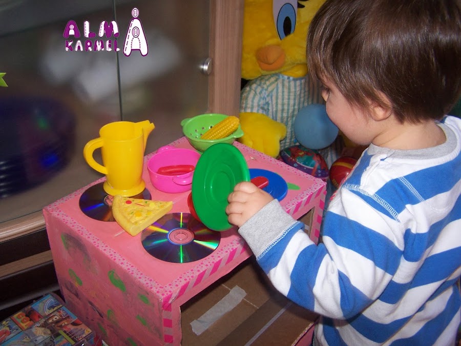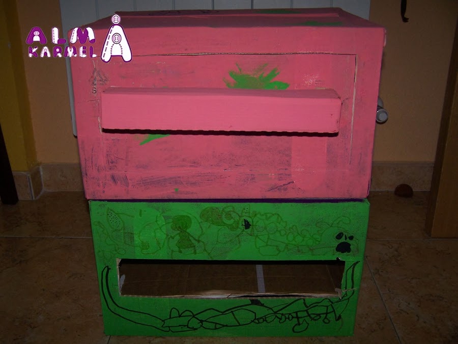 Hola a todos, hoy os traigo un trabajito que hemos estado realizando mi niña y yo. Hace ya algún tiempo, me dijo que quería que le hiciese una cocinita de cartón, yo le dije que sí, claro está, y me puse a pensar cómo hacerla, para ver el tamaño de las cajas que tenía que buscar.