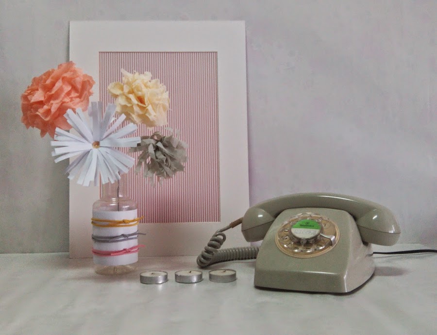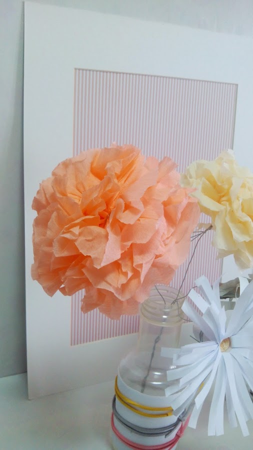 Le colocamos las flores y voilà! He usado unas flores que he hecho son papel pinocho o crespón... en otra entrada os enseñaré a hace de varios tipos, pronto!