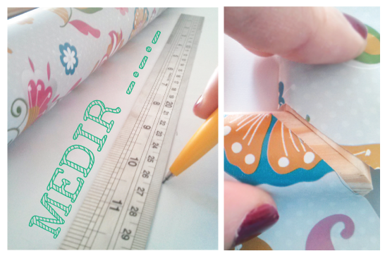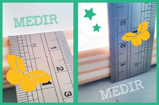 Lo primero que debemos hacer es medir la superficie a cubrir, en este caso es el marco de la pizarra paro podéis aplicar esta técnica a otro tipo de objetos de madera como un cajón, un jarrón etc..