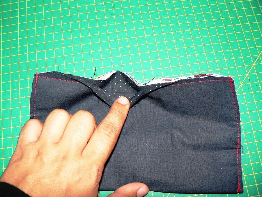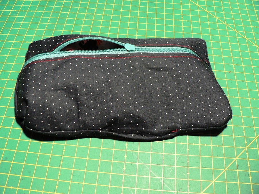 Y ojo! para darle la vuelta hay que sacarlo por el agujero de en medio de las piezas de forro. Y el estuche saldrá con el interior hacia fuera. Este paso suele llevar a equívocos.