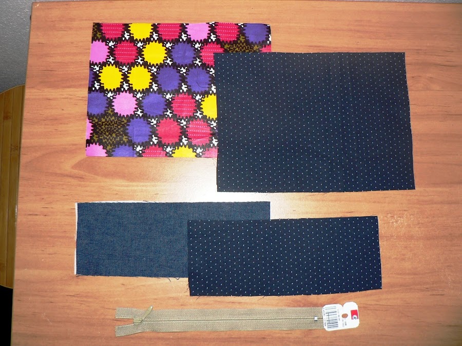 - 2 trozos de tela de 18cm de alto por 22cm de ancho. Uno de tela exterior y otro de tela interior.