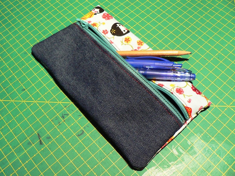 Puedes aprovechar para decorar alguna parte. Este tipo de estuches me parecen muy graciosos combinando una tela lisa con otra estampada y suelo aprovechar para decorar de algún modo la parte lisa. Por ejemplo con algún bordado, aplicación, vinilo....