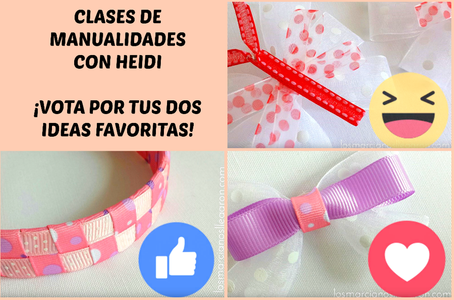 Para votar por vuestra idea favorita solo tenéis que entrar AQUÍ y dar a ME GUSTA si queréis aprender a hacer diademas, ME ENCANTA si queréis los lazos, o ME DIVIERTE si queréis las mariposas.