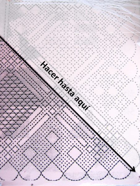 Por ello, vamos trabajando a trozos desde la derecha hacia la izquierda y desde arriba abajo, siempre que nos caigan bolillos desde el lado derecho, pero...