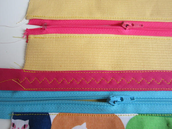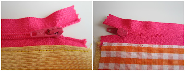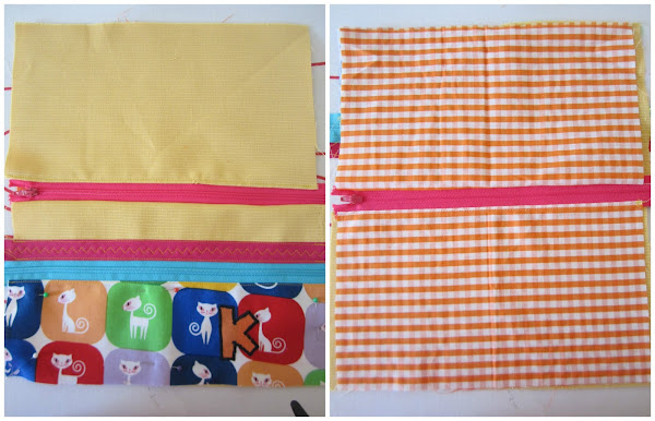 ¡IMPORTANTE! Abrir un poco las cremalleras para que se queden en el interior del estuche, sino cuando cosamos el perímetro se nos quedará las cremalleras fuera.