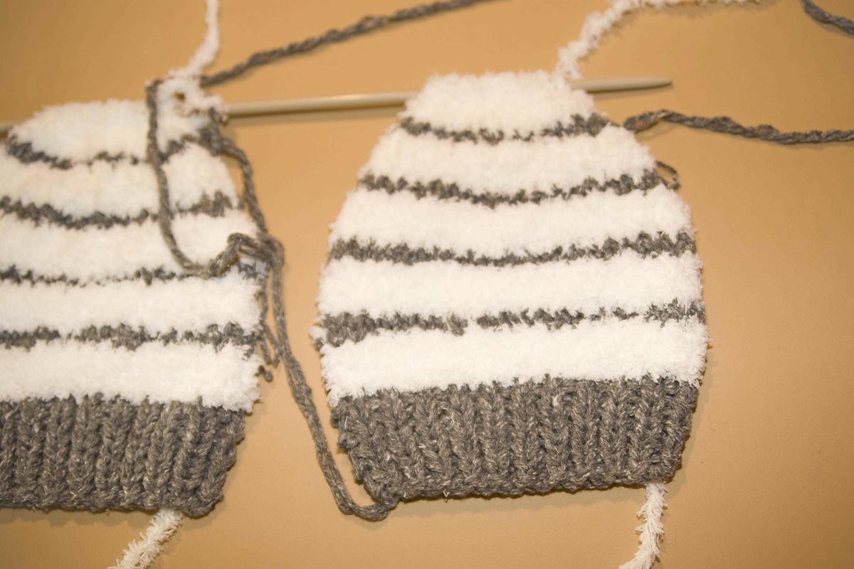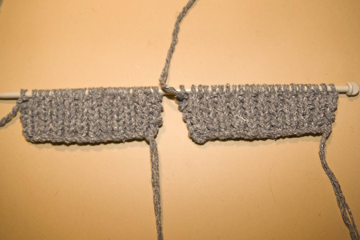 Cambiamos a la lana gris y tejemos 2 vueltas a punto jersey.