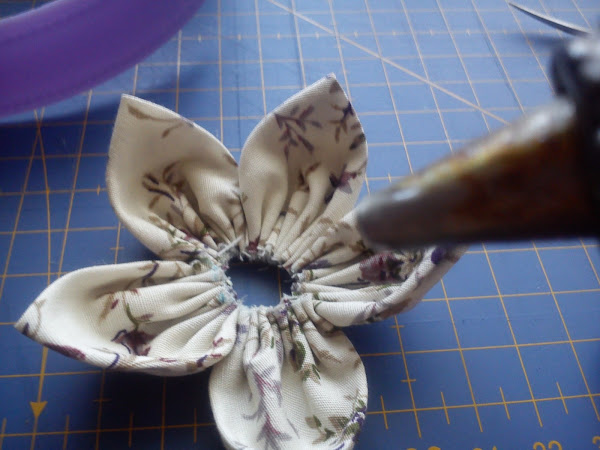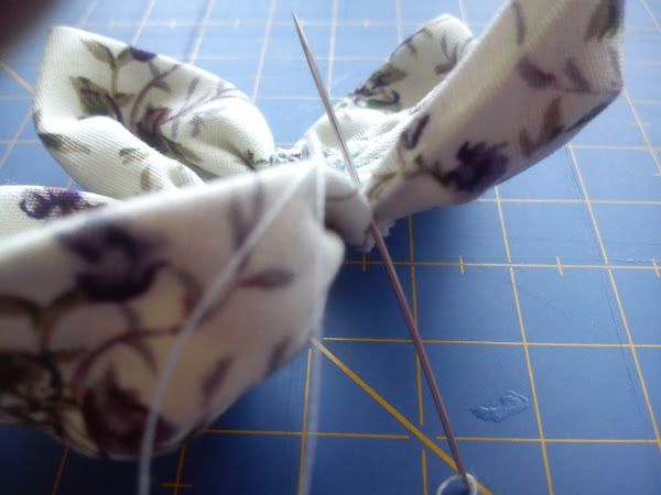 Cuando tengamos los cinco pétalos bien frunciditos, daremos unas puntadas para terminar.