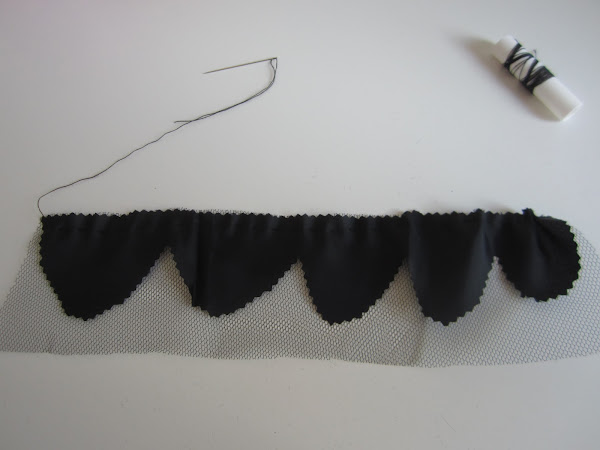 Primero cortar un rectángulo de tul que mida 35x7 cm.
