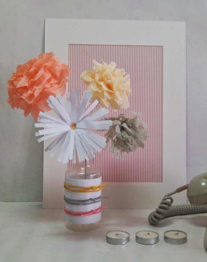 Le colocamos las flores y voilà! He usado unas flores que he hecho son papel pinocho o crespón... en otra entrada os enseñaré a hace de varios tipos, pronto!