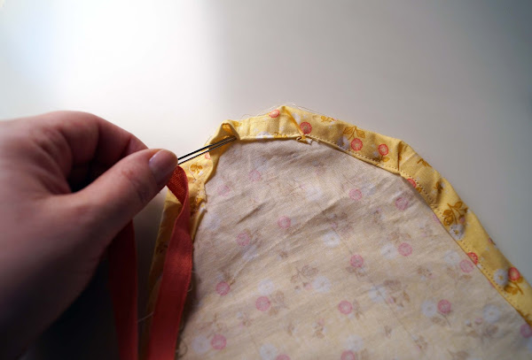 3- Sew the hem leaving a gap to pull the ribbon or the cord through, which is the next step.