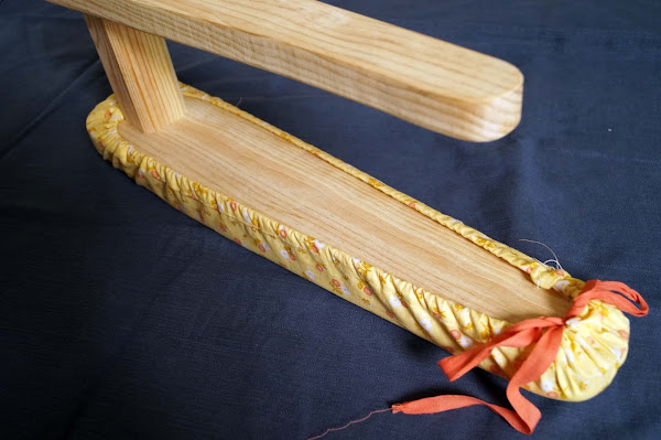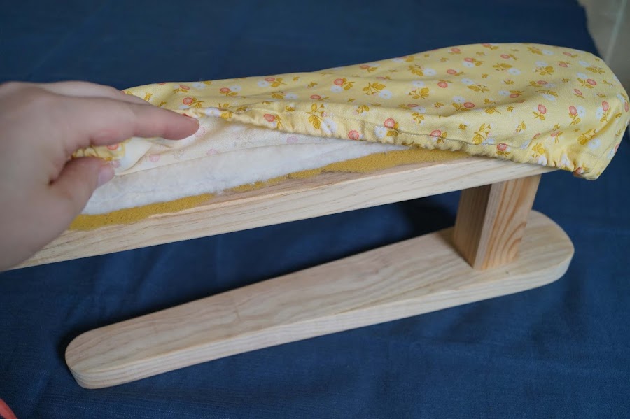 ¿Utilizáis manguero para planchar? Hay quienes no saben lo que es y quienes no pueden prescindir de él. Se trata de una tabla de planchar pequeña y estrecha que se coloca sobre la mesa o la tabla grande y se usa para planchar mangas y perneras. Tradicionalmente son de madera y tienen dos lados, uno más pequeño que el otro. Yo tenía uno que debí perder en una mudanza y ahora lo estoy echando en falta, así que he comprado otro. Y como los venden sin forrar, me he puesto manos a la obra.