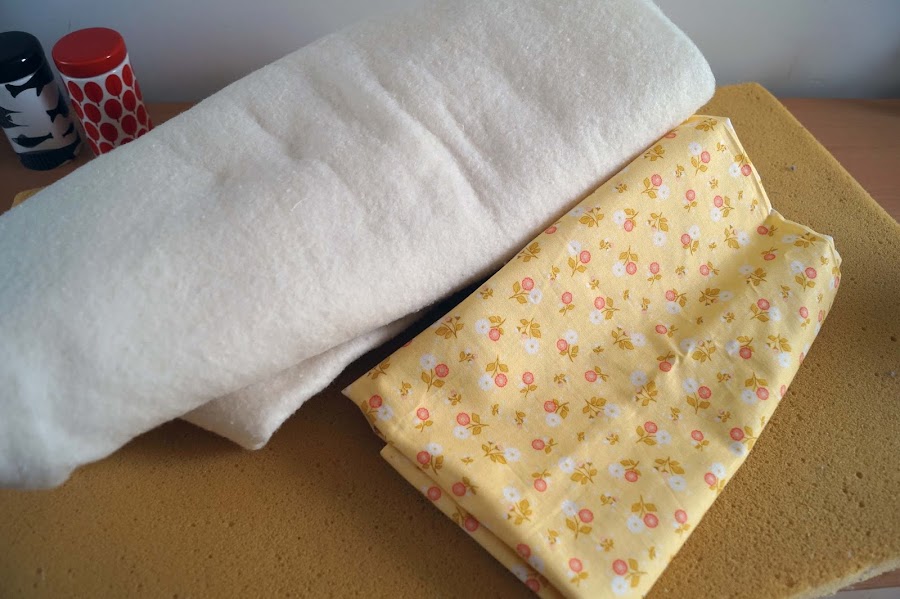 We need foam rubber, wadding, fabric and ribbon or cord.