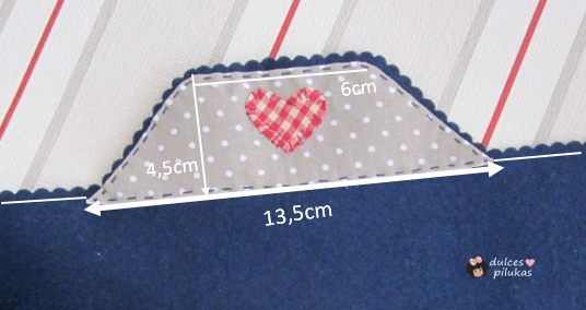 El borde de arriba lo cortamos 0,5 cm por fuera del patrón