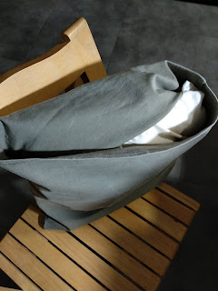 Aquí la tenemos vista del revés. Para que encaje bien el cojín hay que hacerle una especie de bolsillo a la funda por un lado, así podremos colocarlo dentro y quedará bien.