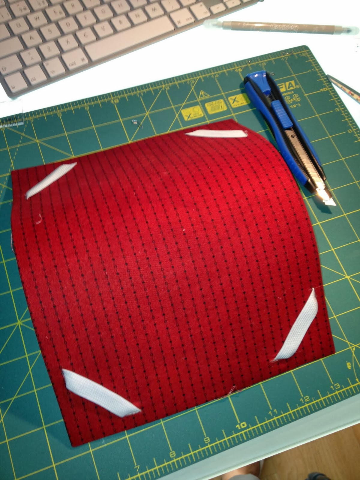 Después hacemos unas incisiones con el cúter del ancho de la goma