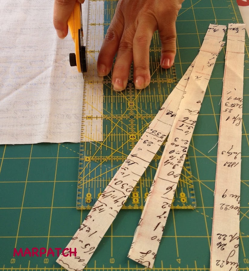 Ahora vamos a cortar unas tiras de tela de 2 cm de ancho que van a hacer como de bisagras....