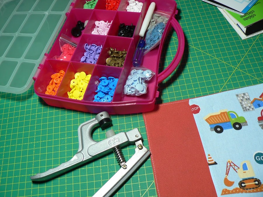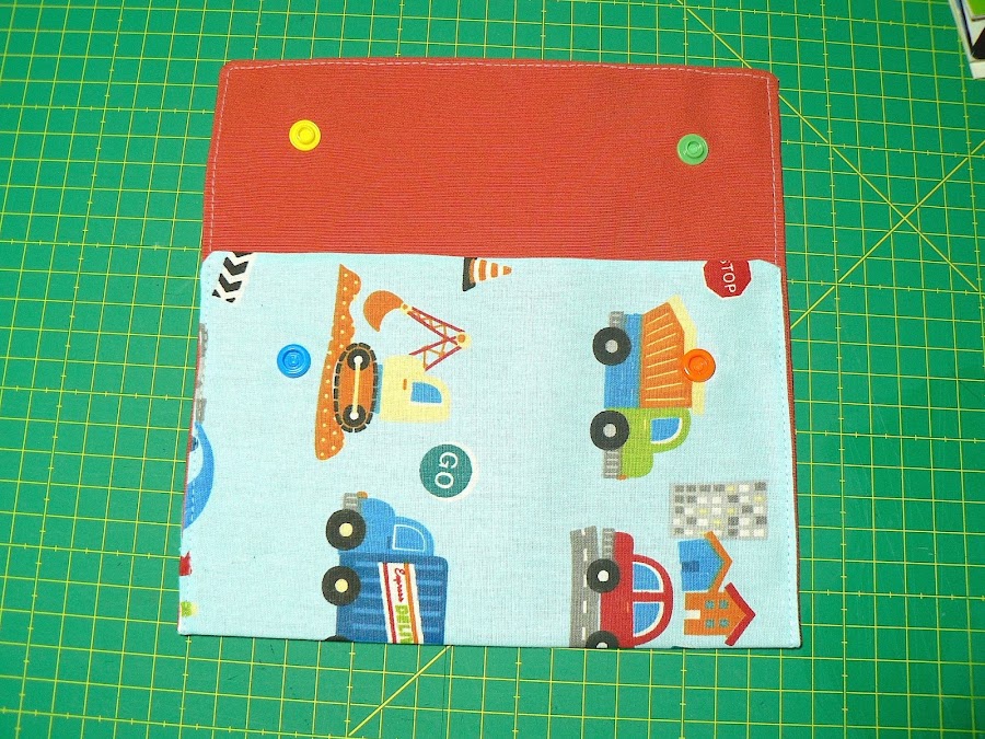 Ahora colocamos los snaps. Si vas a usar velcro de coser, es mejor que lo coloques antes de unir las piezas, en el primer paso. Si usas automáticos o cierres de coser a mano, los puedes colocar ahora. Yo voy a aprovechar que la funda es tan colorida y voy a poner los snaps de colores variados.