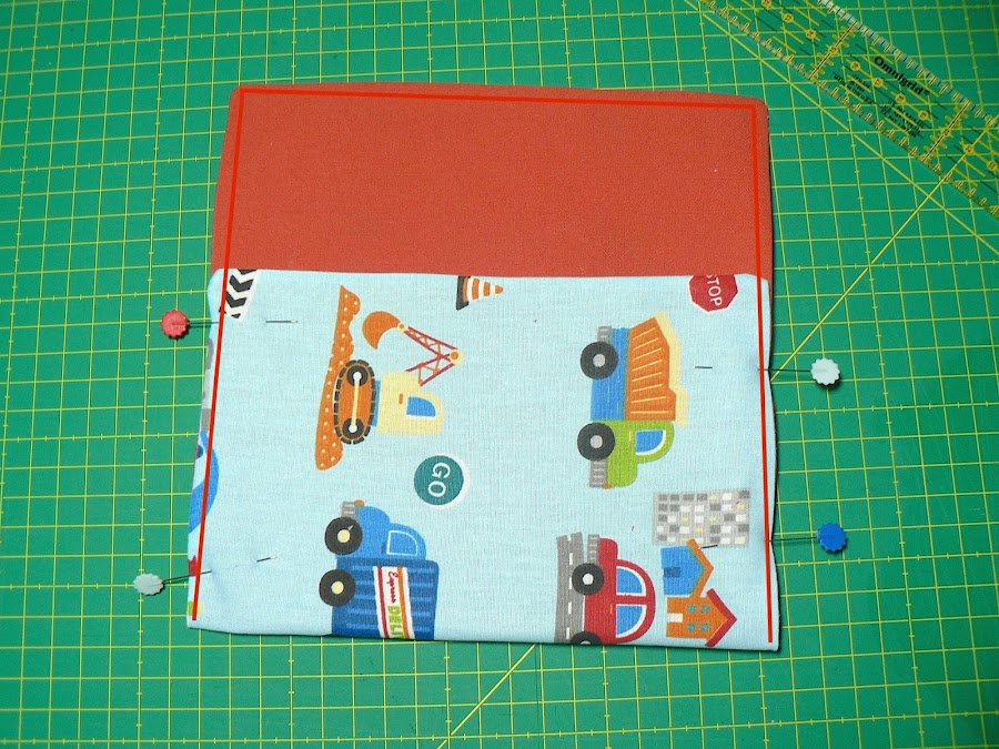 La primera opción es coser por las marcas rojas sólo hasta donde se cortan con las negras. La segunda opción es coser por las marcas rojas enteras.
