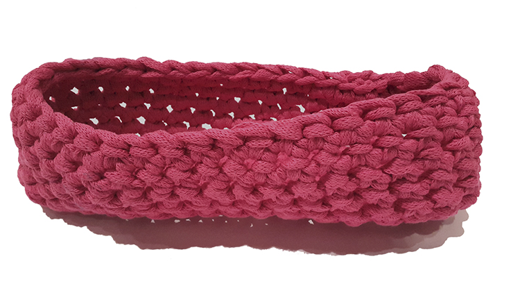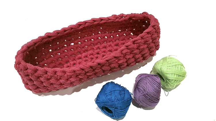 After a long time, Les Antònies have returned to using the t-shirt yarn. We have decided to make an oval or elongated basket which can serve for anything. It is so versatile that it can be a bread basket, a basket for the brushes or pencils or, even, a planter to put pots with plants.