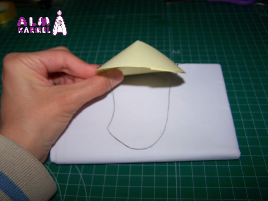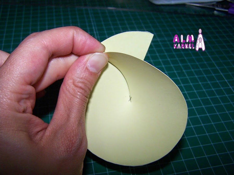 Una vez hecho ponemos un lado sobre el otro, como veis en la foto, cuanto más los metamos más alto se nos quedará. Y lo pegamos con pegamento o con cinta adhesiva.