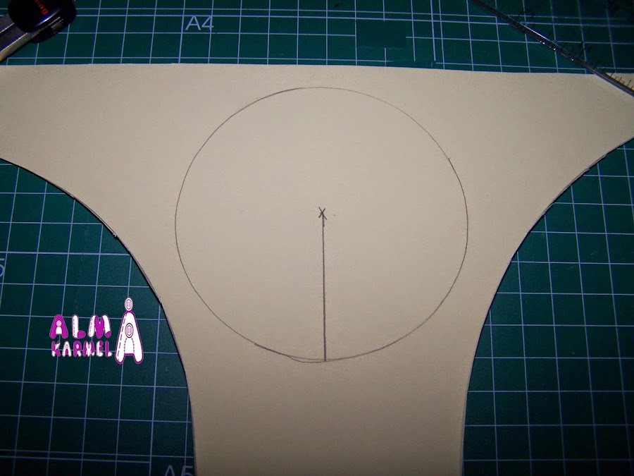 Marcamos el centro del círculo, y he dibujado lo que sería el radio de este círculo que es por donde vamos a cortar.