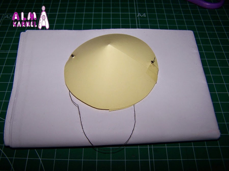 Con un punzón hacemos dos agujeros en los laterales y metemos goma elástica para sujetarlo en la cabeza.. Y ya tenemos listo nuestro gorro.