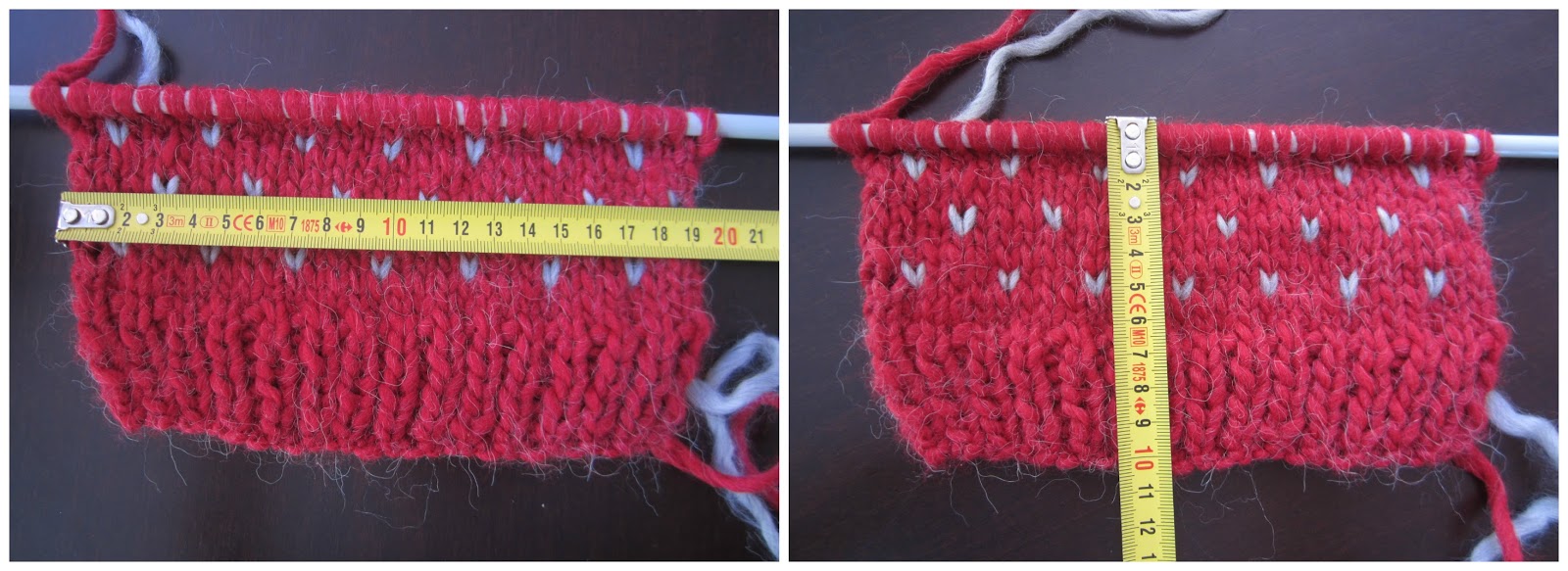 ¡Ah! Si vais a utilizar otro tipo de lana con diferente grosor, no os preocupéis, es muy fácil adaptarlo. Primero tendréis que hacer una muestracon vuestra lana, para ello montar por ejemplo 15 puntos en vuestra aguja y tejer unas 10 pasadas. Lo ponéis planito sobre la mesa y tomáis medidas de ancho y alto de vuestra muestra. Entonces hacéis una sencilla regla de tres. Os explico?