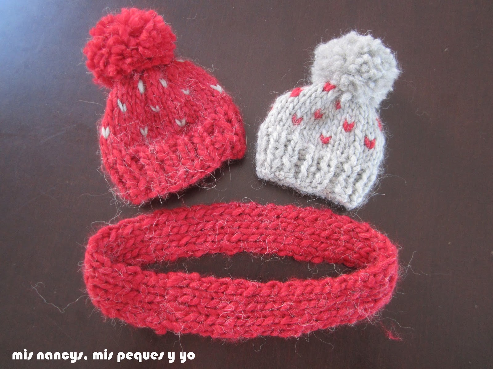 Ya estoy aquí de nuevo. Esta vez para enseñaros los gorritos de lana que les he tejido a las Nancys, tal como os prometí. He utilizado la lana que me sobró de tejer mis gorros de lana en gris y granate, y es que cuando me sobra algo no puedo evitar pensar?"mmm?de aquí seguro que me sale algo para la Nancy?voy a probar!!"