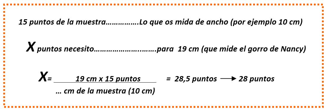 El gorro para la Nancy es un rectángulo que mide 19 cm de ancho por 10 cm de alto.