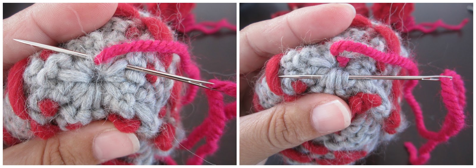 Y repetir el proceso con la otra hebra de lana que nos queda de atar el pompón.