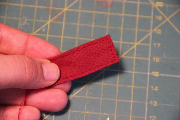Lo primero que haremos será doblar el bien a la mitad y hacer un pespunte alrededor, tal y como se ve en la foto